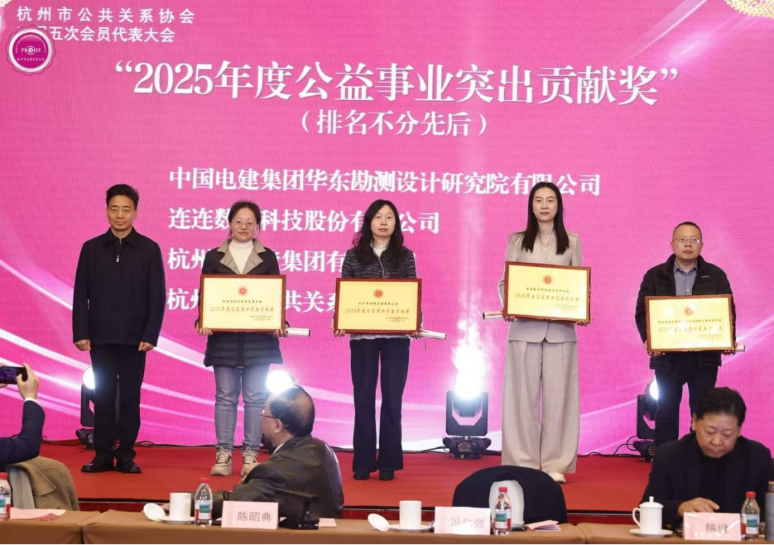 备受关注的表彰环节成为全场亮点。杭州西湖公共关系基金会凭借在支持公共关系研究、促进行业交流、投身公益事业等方面的突出贡献,荣获“2025年度公益事业突出贡献奖”。这一荣誉不仅是对基金会工作的肯定,更是对其持续推动行业进步、服务社会发展所付出努力的认可。颁奖仪式上,杭州市政协副主席、工商联主席冯仁强亲自为获奖单位颁奖,浙江省政协原副主席陈昭典为先进个人颁发证书,现场掌声不断,气氛热烈。